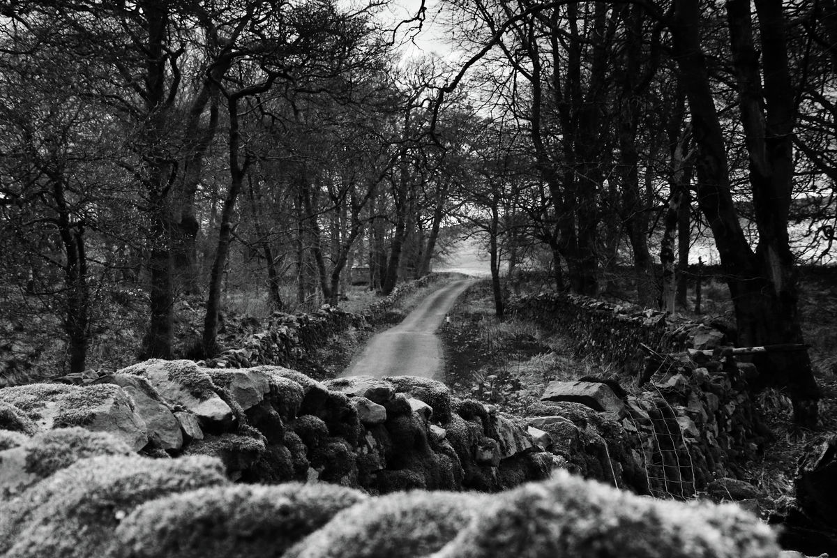 A weekend in England's Yorkshire Dales is a walker's paradise. Mostly farming land with hand-placed stone walls crossing the land. I saw this lovely road with a canopy of trees. I took this photo with the moss in the foreground and the stone walls leading your eyes down the road. As if you were taking this quiet countryside walk.